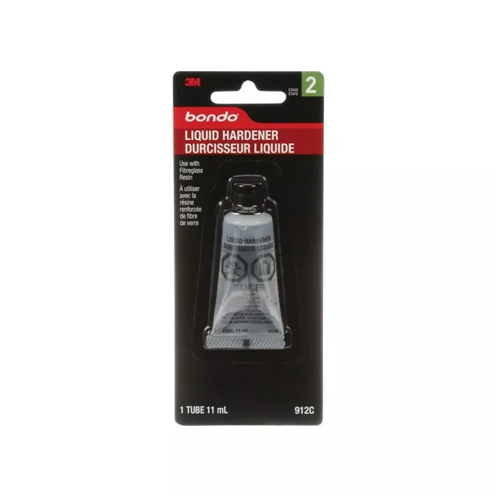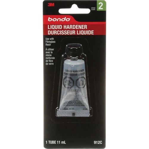 - Creates a chemical reaction with Bondo® Fibreglass Resin and other resins requiring liquid hardener for fast cure