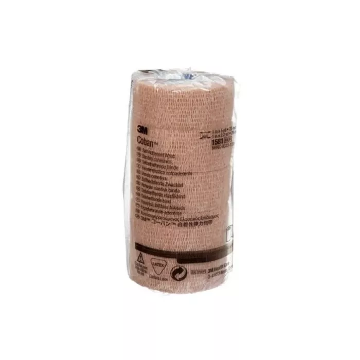 The 3M Coban Self-Adherent Wrap is a cohesive bandage designed for secure and comfortable support in wound care applications. This lightweight wrap is adjustable and can serve as a secondary dressing, providing protection and compression for sprains, strains, and edema control. It meets industry standards for porosity and durability, ensuring reliable performance in various medical settings.