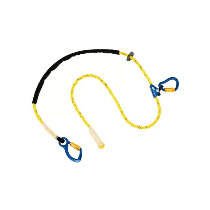 - Lightweight aluminum rope adjuster and carabiner at one end