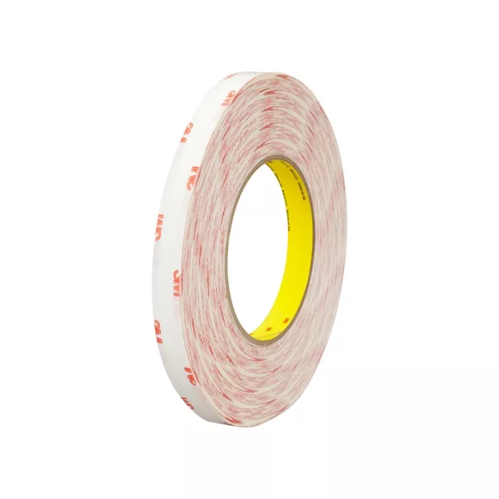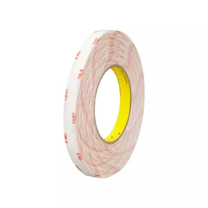 - Double coated tape with tissue carrier adds dimensional stability for handling