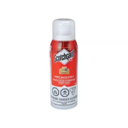 The 3M Scotchgard Fabric Water Shield provides strong protection against water-based spills, making cleanup easier for various household items and clothing. It is designed for application on upholstery, curtains, table linens, and clothing such as shirts and outerwear, ensuring effective repellent qualities. This product dries clear, is odorless, and safe for use around people and pets.