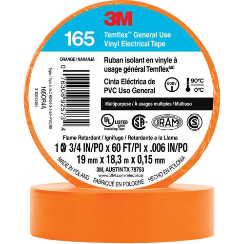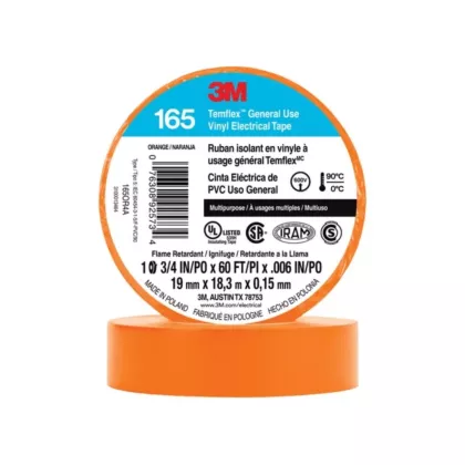 3M Temflex™ General Use Vinyl Electrical Tape 165, 19 mm (3/4") X 18 M (60'), 6 mils, Orange (165OR4A)
