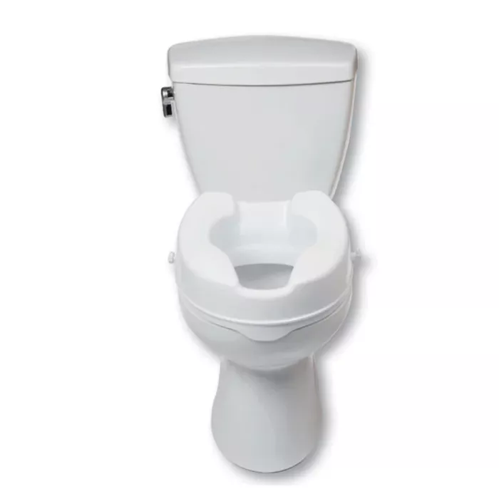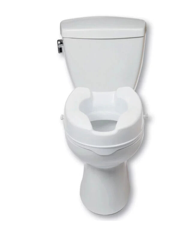 - The raised toilet seat provides additional height to assist individuals with limited mobility, making it easier to sit down and stand up.