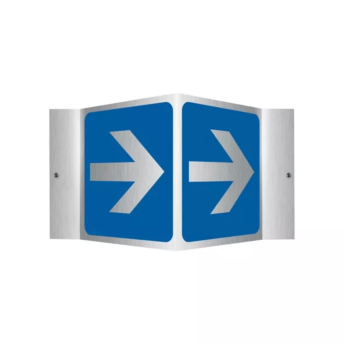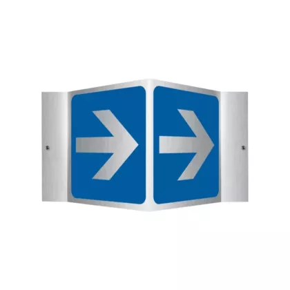 - 3D signs, projecting 45° from the wall, provide optimum viewing from front and sides