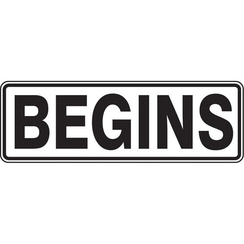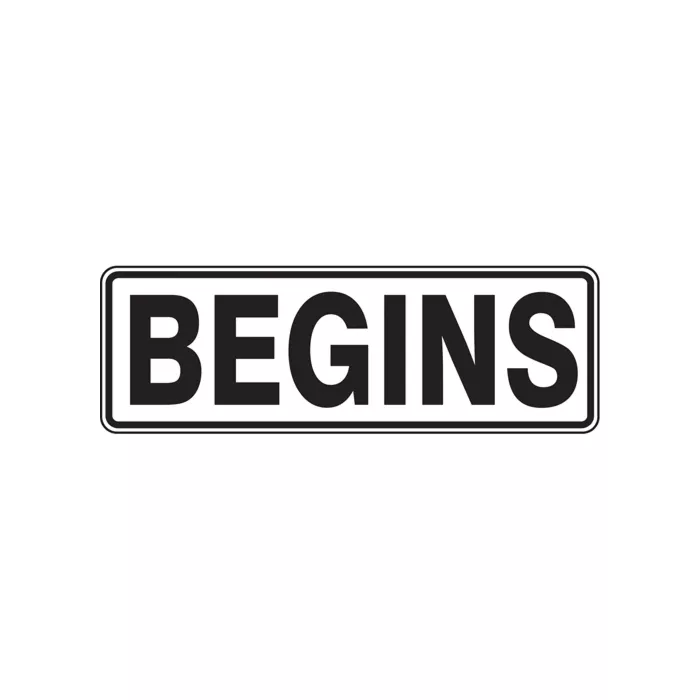 "Begins" Road Sign