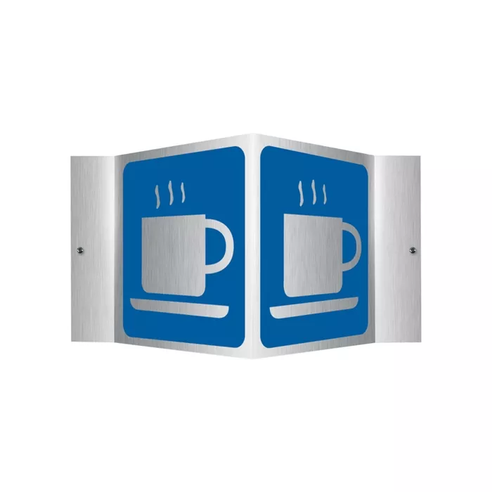 - 3D signs, projecting 45° from the wall, provide optimum viewing from front and sides