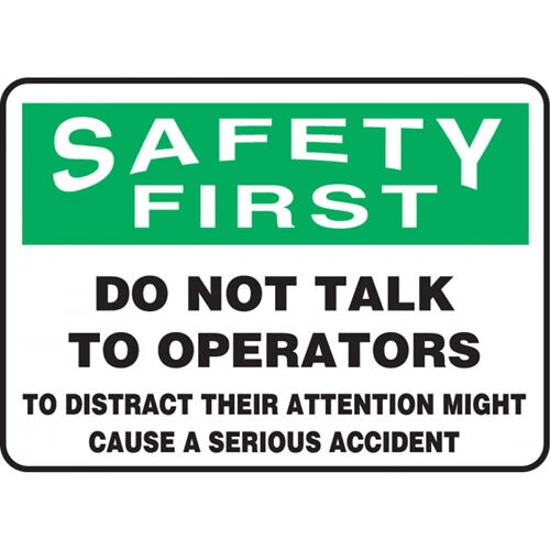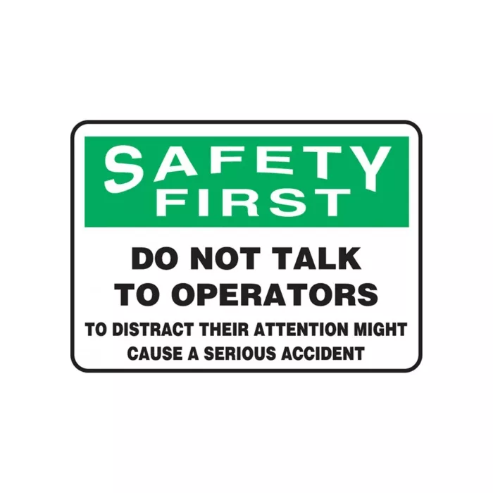 - OSHA-compliant sign clearly explains why it is unsafe to talk to operators