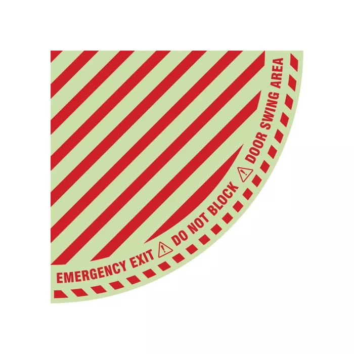 "Emergency Exit" Quarter Circle Swing Door Floor Sign