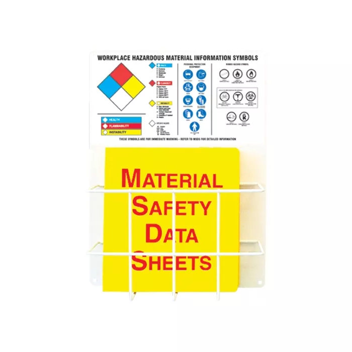 - Coated wire basket bolted to lower portion holds MSDS binder