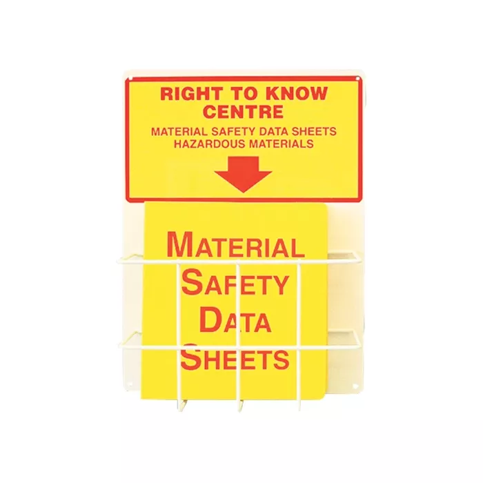 - Coated wire basket bolted to lower portion to hold MSDS binder