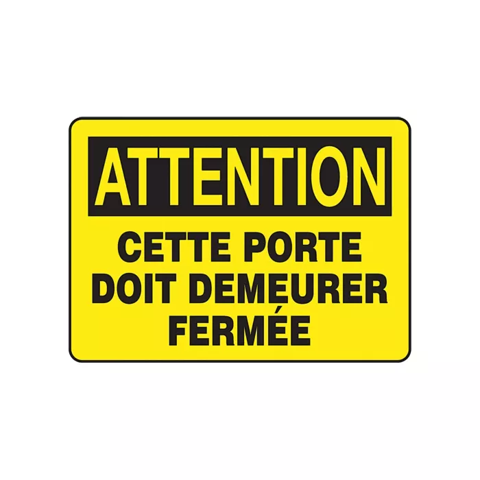 | legend | Attention; Cette Porte Doit Demeurer Fermée |