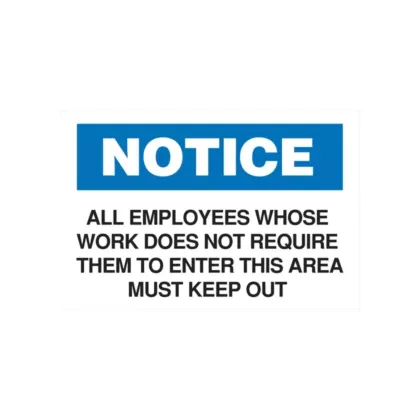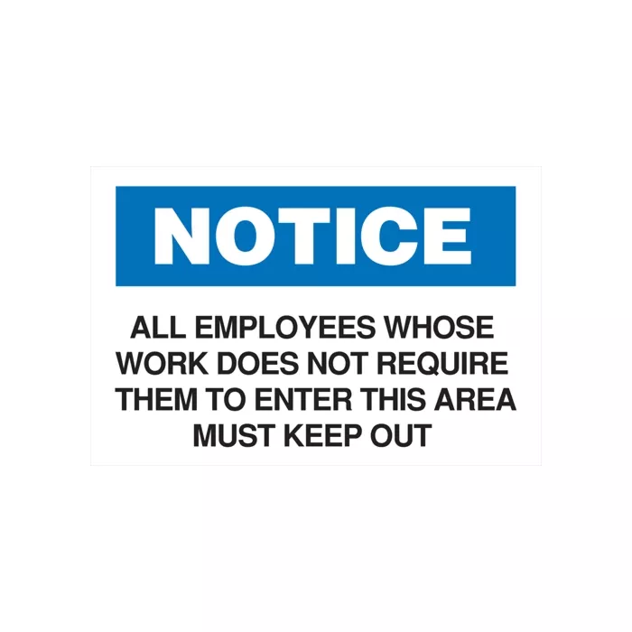 Notice; All Employees whose work does not require them to be in this area must Keep out |