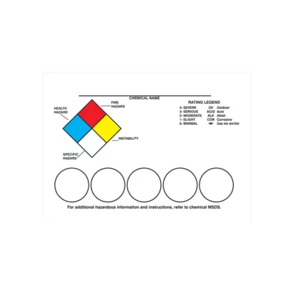 - Kit includes 1 sheet of 17 pictogram stickers and choice of NFPA Diamond or Colour Bar format