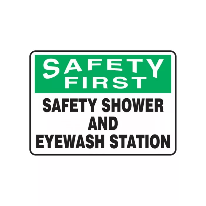 - Draw attention to safety shower and eyewash stations for fast first aid treatment