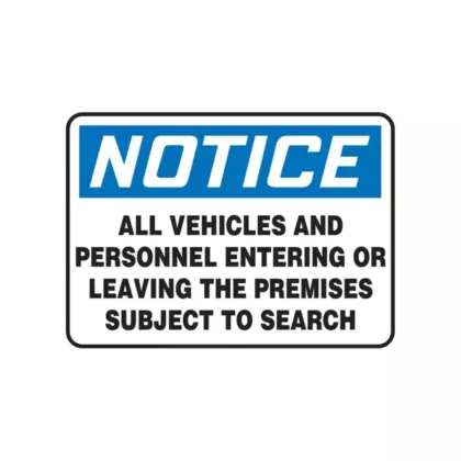 | legend | Notice; All Vehicles and Personnel Entering Or Leaving The Premises Subject To Search |
