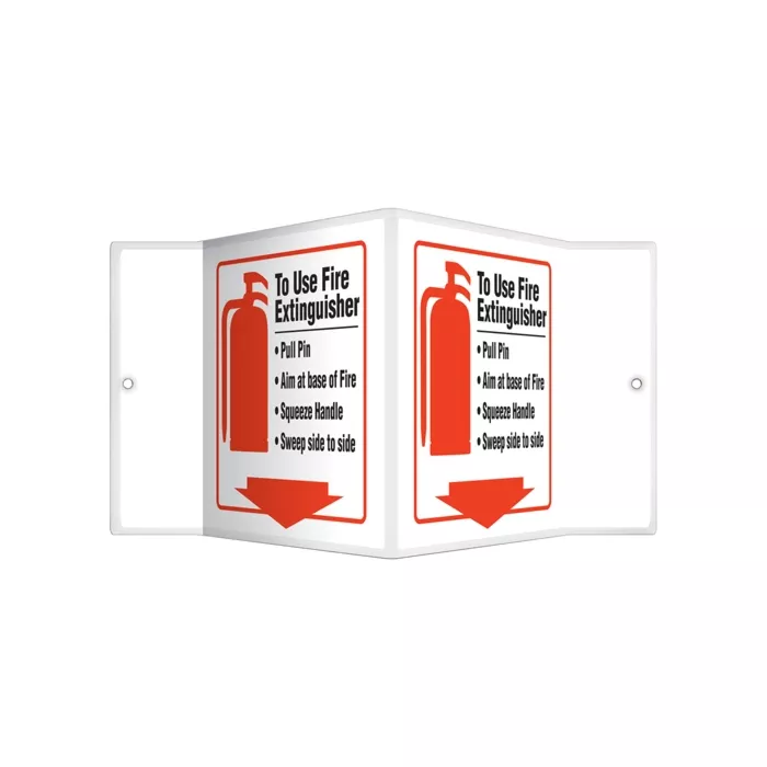 To Use Fire Extinguisher_Pull Pin_Aim at base of Fire_Squeeze Handle_Sweep side to side |