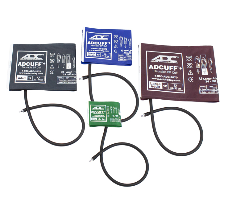 The Adcuff+ model with one tube can be used with most palm aneroids and many NIBP monitors, and features an all-new, one-piece, reusable nylon blood pressure cuff: