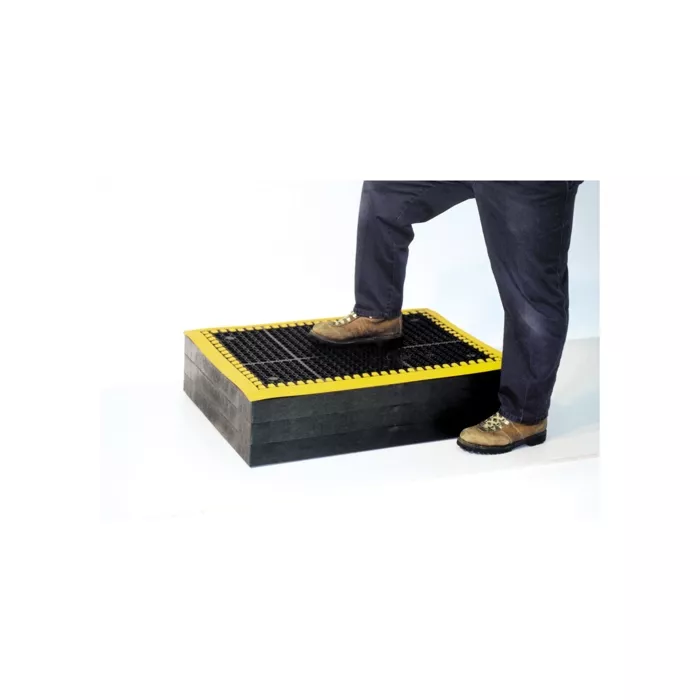- Choose a 1/2" grease-resistant mat or a 7/8" comfort drainage mat, both available in black or black with yellow borders for added visibility