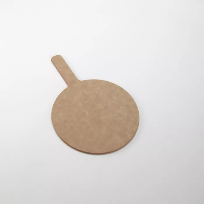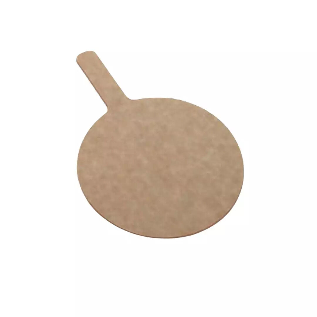 The 18" Round Pressed Peel (MP1823) is a specially designed pressed pizza peel from American Metalcraft. This remarkably durable peel is constructed from pressed NSF and USDA listed paper for a peel that is an excellent alternative to wood peels which may not pass health inspections if improperly maintained. Maintaining much of the look and feel of a wood peel, the pressed paper peel construction is easier on pizzas than an aluminum peel that can inadvertently damage pizzas with its sharper edges. This peel's blade measures eighteen inches (45.7 cm) in diameter and has a five inch (12.7 cm) handle attached which makes it the perfect choice for extra large pizzas and customers with shallow ovens.