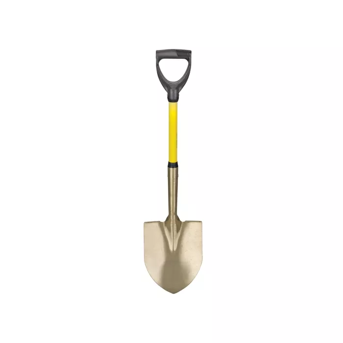 - Non-sparking metal construction. One-piece blade, hollow-socket shovels and scoops. High strength and manageable weight allow for continuous and effective use. Long-handled models have fibreglass handles and D-handled models have fibreglass handles with a plastic grip bar.