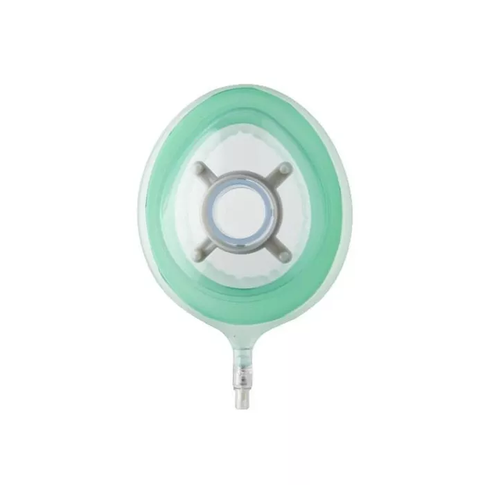 Tail valve design prevents valve from interfering with the clinician's grip during difficult intubations Valve made with metallic spring to prevent deflation Hook rings twist off for additional mask grip options (hook rings included on sizes 3-7)