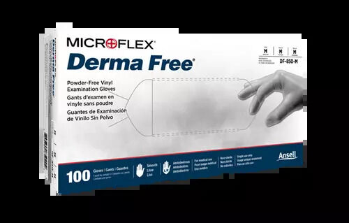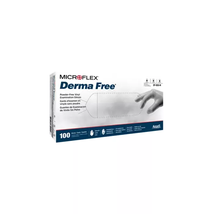 Microflex Derma Free® vinyl gloves provide complete handprotection for a variety of applications. This 100% synthetic glove ispowder-free and features a smooth surface for more natural tactile sensitivity.| Brands | Ansell |