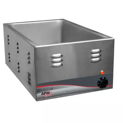 Energy Efficient Design that keeps hot food at the perfect serving temperature. Made of heavy-duty stainless steel. Designed to run either with water (best option) or dry (will not harm warmer). Unique heat system evenly distributes heat. Insulated to protect interior parts and countertops from heat build-up. Steel element support stabilizes the heating element and reflects heat toward food. Infinite temperature control.