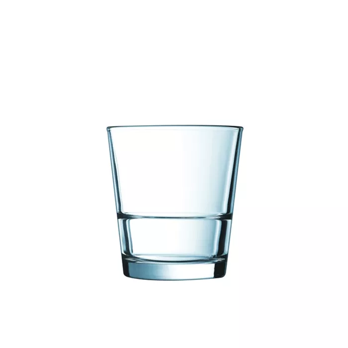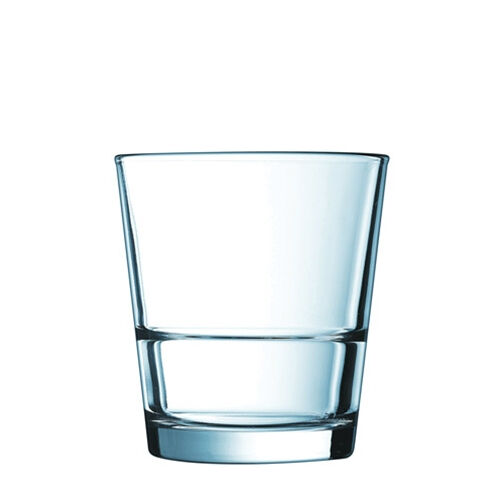 From the Arcoroc® Stack Up Collection.The latest innovation behind the bar! Strength and Stack-ability are finally combined into one complete collection. Designed with a ledge for safe stacking. Fully Tempered glass fully 5 times stronger than annealed glass. Thermal Shock Resistant. Stronger then competition in Mechanical Shock Resistance tests. Inside ledge allowing for stackability. Height/Top - H:3.89" T:3.56". Base/Max - B:2.69" M:3.56".