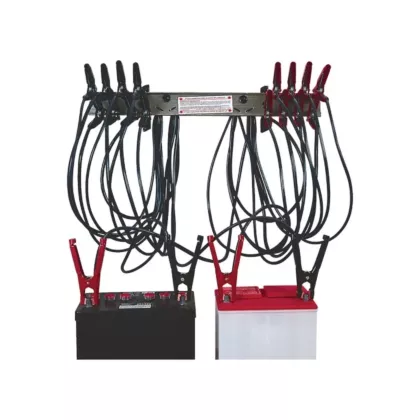 - Insulated fiberglass backboard with 10 pairs DC charging 300 Amp insulated safety clamps with 72″ long 10 GA cable