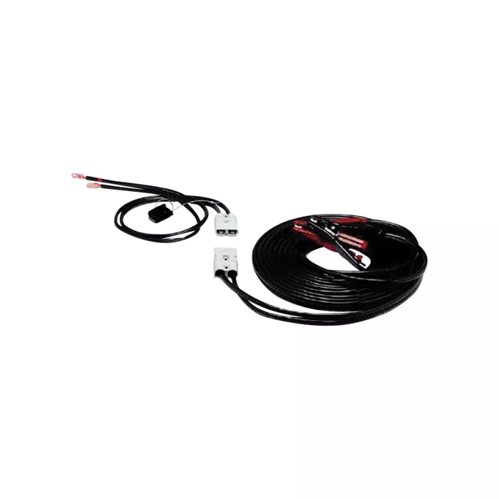 - Features a weather proof socket and polarized plug with up to 30 feet of tangle-free cables with solid copper jaws and insulated clamps with “FLEXI-SPRING” cable guard