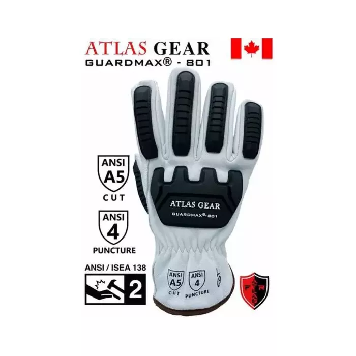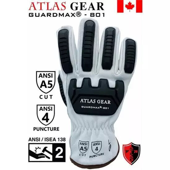 ANSI 105-2016: Cut Resistance Level A5, Puncture Resistance 4, Impact Resistance Level 2.