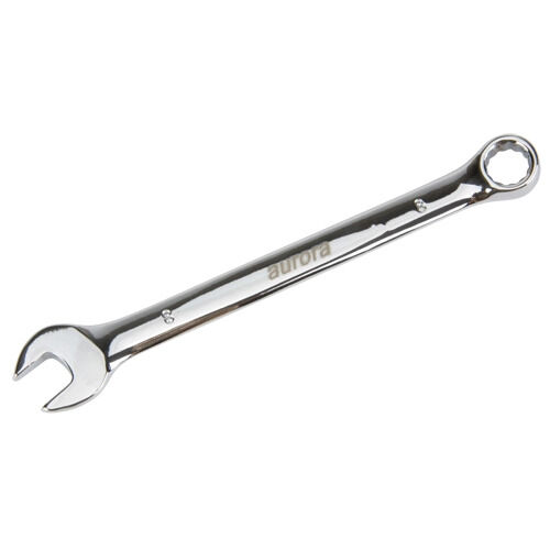 Aurora Tools Combination Wrench, 12 No. of Points, 131 mm, 8 mm, Chrome, Plain