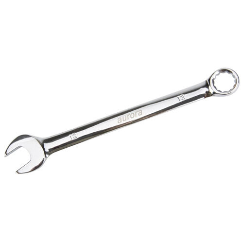 Aurora Tools Combination Wrench, 12 No. of Points, 171 mm, 13 mm, Chrome, Plain
