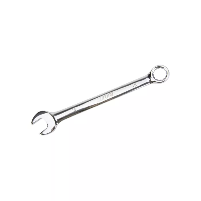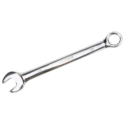 Aurora Tools Combination Wrench, 12 No. of Points, 191 mm, 15 mm, Chrome, Plain