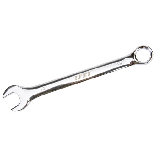 Aurora Tools Combination Wrench, 12 No. of Points, 231 mm, 19 mm, Chrome, Plain