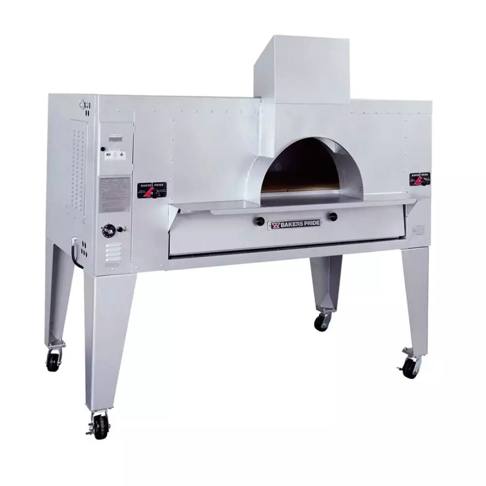 The Bakers Pride® model FC-516 pizza oven combines the ambiance of a traditional, old-world brick oven with the convenience, control, and precision of modern technology. This model has a steel-reinforced arched opening with a visible, open-flame burner to make loading pizzas easy while creating a dining atmosphere. It also offers heavy-duty, stainless steel construction with a heavy-duty .25" angle iron frame, which is fully welded to allow for stacking on our standard deck ovens.