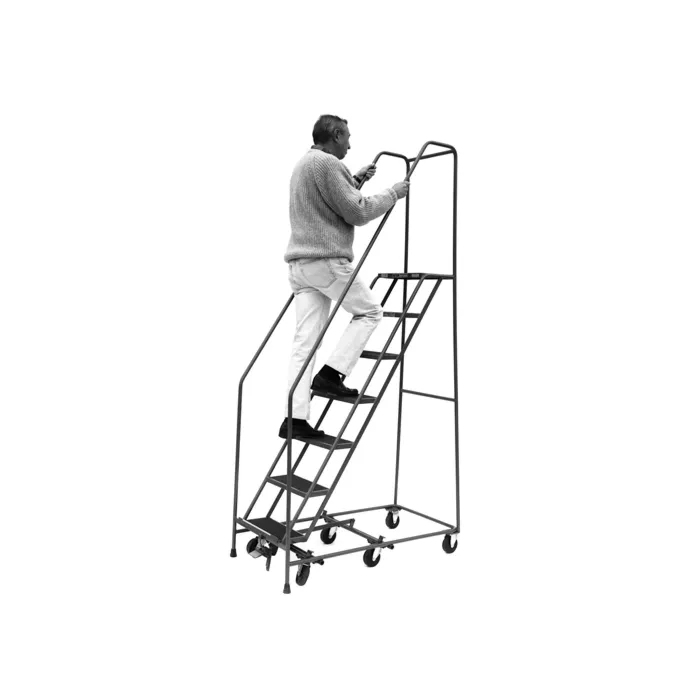 - Five-wheeled centre caster design allows ladder to be manoeuvred easily in narrow aisles
