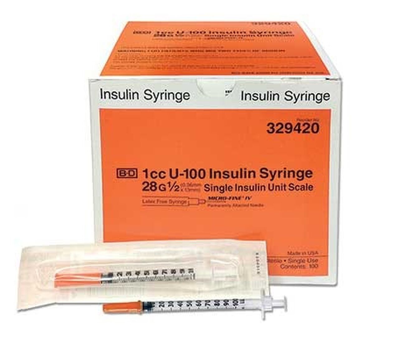 BD U-100 Micro-Fine IV Insulin Syringe with Needle 1cc 28g x 1/2", 100/box