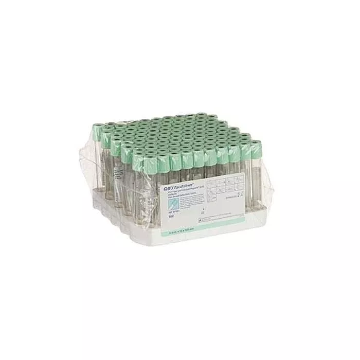 Size:13x100mm x 4.5 mL BD Vacutainer® Plus plastic plasma tube. BD Hemogard™ closure. Paper label. Additive: Lithium heparinN (spray coated) and polymer separator gel. May be used in PRP procedures
