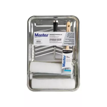 - Includes: (1) Metal paint tray, (1) Heavy-duty roller frame, (2) 240 mm Woven roller covers, (1) 2" Angle sash brush