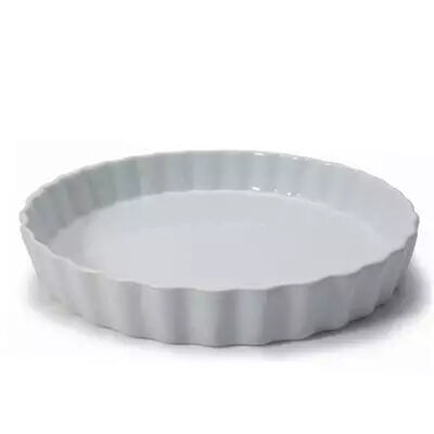 Quiche / Pie Dish, round, white, porcelain. Oven, microwave & dishwasher safe.