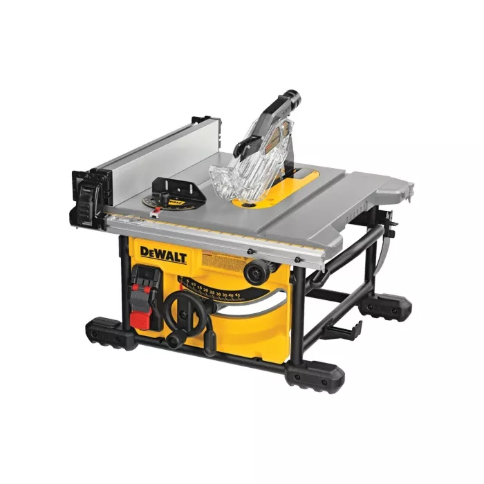- On-board storage for guard, fence, wrenches, and miter gauge