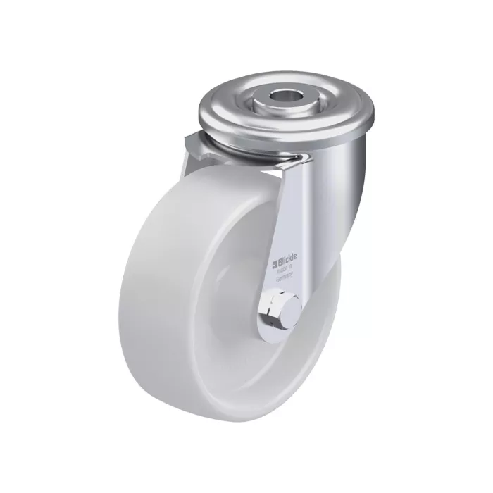 - Pressed steel swivel caster with bolt hole fitting