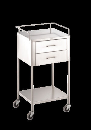 7754SS Anesthesia Utility Tables are popular in the OR and throughout healthcare facilities as a general utility cart. Blickmans superior construction adds a supporting channel underneath the top shelf to enhance its strength; a positive stop to prevent accidental drawer removal and soft close ball bearing slides for an easy-sliding drawer. Travels easily on 3″ casters.