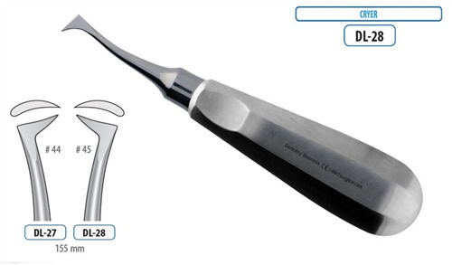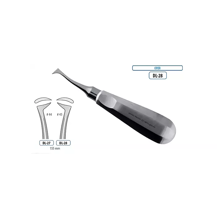 Root Elevator Cryer SX #45Length: 155mmMaterial: Martensitic Stainless SteelUsed to loosen the tooth from the periodontal ligament and ease extraction.
