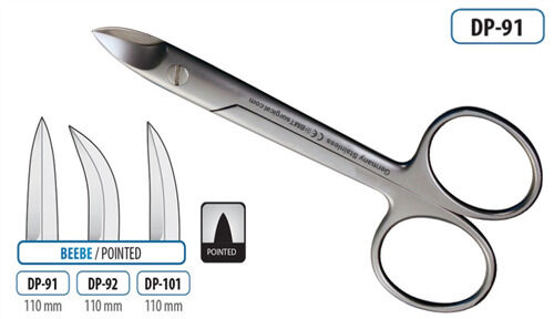 Scissors Beebe Pointed and Sharp CurvedLength: 110mmMaterial: Martensitic Stainless Steel