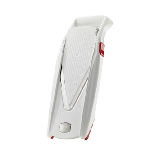 Incredibly sharp, surgical grade stainless steel blades. Comes with three inserts, which make ten different cuts; blades which make four different thicknesses, julienne, shred, cube and create fantastic French fries. Ambidextrous Food Safety Holder allows complete protection and control, is easy to use, and requires very little pressure. Prongs hold food securely while guard protects hands from the blades. When not being used, the insert holder also functions as a drying rack.