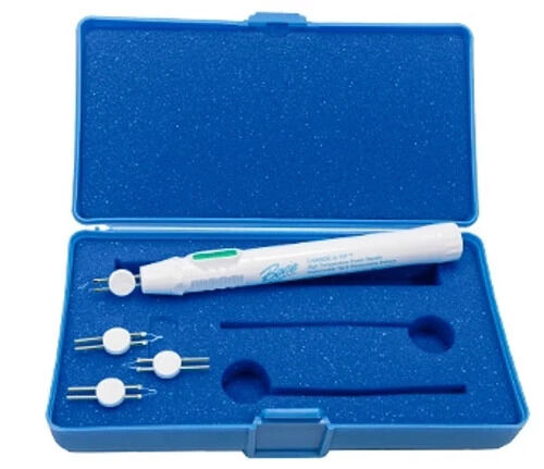 Change-A-Tip deluxe high-temperature cautery kit. Bovie's replaceable battery & replaceable tip cauteries are the next advance in battery operated cauteries where reusability is a must. These products are excellent for the office, ER, and clinical procedures. Includes one high-temperature handle, two H101 non-sterile tips, two H103 non-sterile tips, two “AA" alkaline batteries, and a foam-lined case.