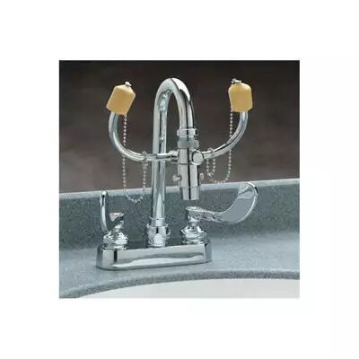 Faucet-mounted eyewash kit includes the following: (1) 55/64" x 24" thread female, (1) 16/16" x 27" male, and (1) 15/16" x 27" thread male