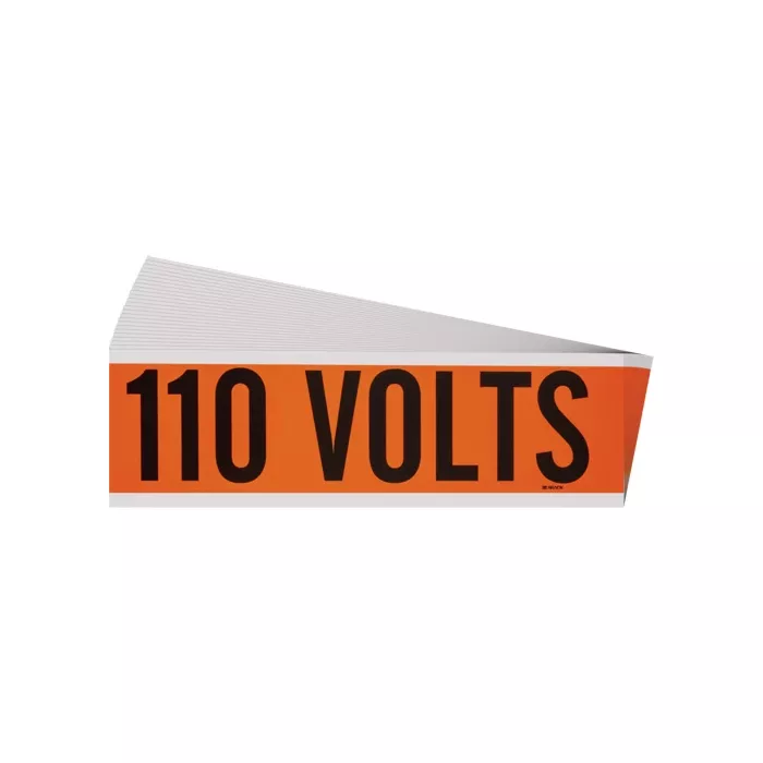 - Orange ASME-compliant conduit and voltage labels alert employees to potentially dangerous machinery or energized equipment